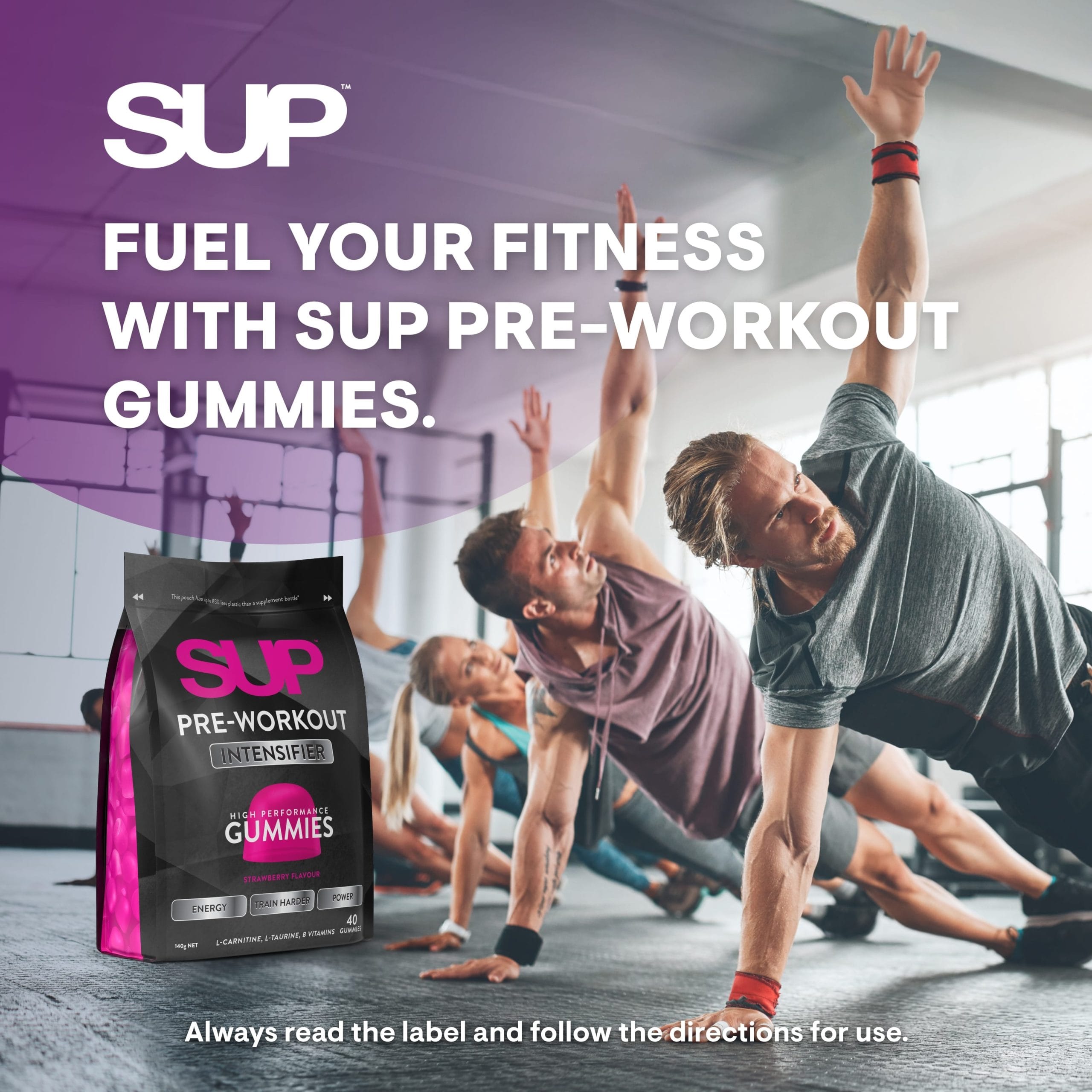 If you’re looking for a pre-workout that provides energy without the drawbacks of caffeine, SUP Pre-Workout Gummies are the perfect choice. They’re formulated to fuel your body, intensify your workout, and help you achieve your fitness goals. With these convenient, tasty gummies, you can power up on the go and take on each workout with confidence. Give your body the pre-workout boost it deserves—no shakes, no caffeine, no fuss. Just grab, chew, and go!